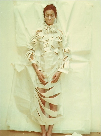 Création et réalisation de vêtements en papier, hommage à Issey Miyake.